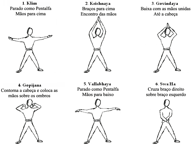 Efetuar os seguintes movimentos pronunciando os mantras: KLIM,